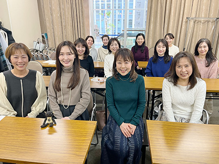 記念撮影では講座や審査等で全国を飛び回っている憧れの栄子先生の隣に座りドキドキしてしまいましたが、どんな質問にも丁寧に答えてくださり、市川バスティン研究会の会員になれた事を嬉しく思った瞬間でもありました。