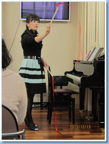 子どもたちがその世界に自然に入りこみ、楽しみながら理解させてしまう、読譜方法のご紹介などがありました。